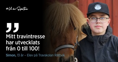 För många börjar intresset för trav av en slump. Simon Käck, 13 år, hade aldrig haft någon kontakt med hästar innan han började på travskolans fritidsverksamhet, Travfritids, vid åtta års ålder. Nu är han helt fast i sporten.