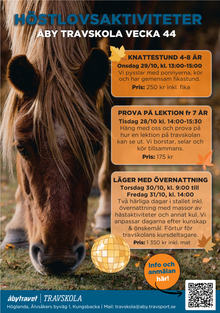 Två härliga dagar i stallet inkl. övernattning med massor av hästaktiviteter och annat kul. Vi anpassar dagarna efter kunskap & önskemål. Förtur för travskolans kursdeltagare på denna aktivitet, begränsat antal platser- först till kvarn!.